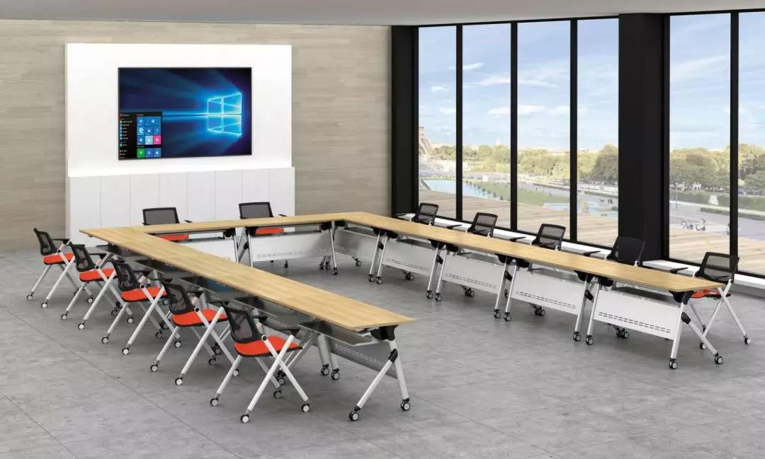 首先会议桌的尺寸应该根据会议室的大小来确定,选择占地面积比例适中的尺寸,让整个会议室看起来不会过于拥挤也不会过于空旷。圆形会议桌和椭圆形会议桌可以营造一种和谐的交流氛围,有利于参会者之间互相沟通讨论。
