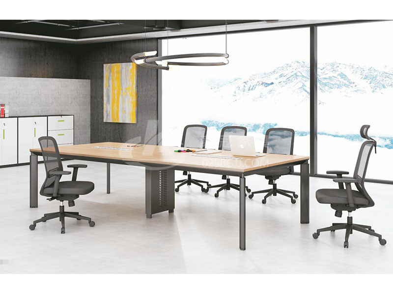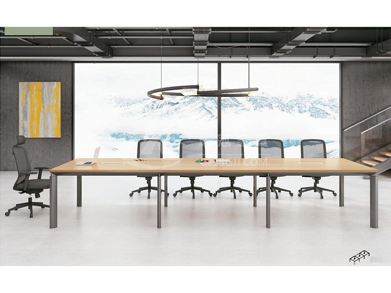 彩运网 板式会议桌采用与主管桌相同的设计元素,呈现办公空间整体性;模块式桌面咨询平台,独设的电路检修门,满足现代会议设备需求。