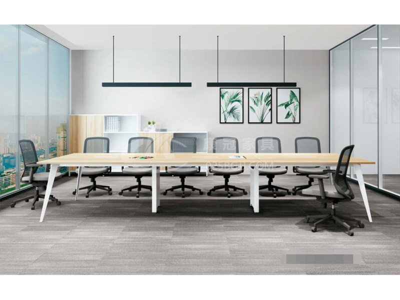 板式会议桌采用与主管桌相同的设计元素,呈现办公空间整体性;模块式桌面咨询平台,独设的电路检修门,满足现代会议设备需求。
