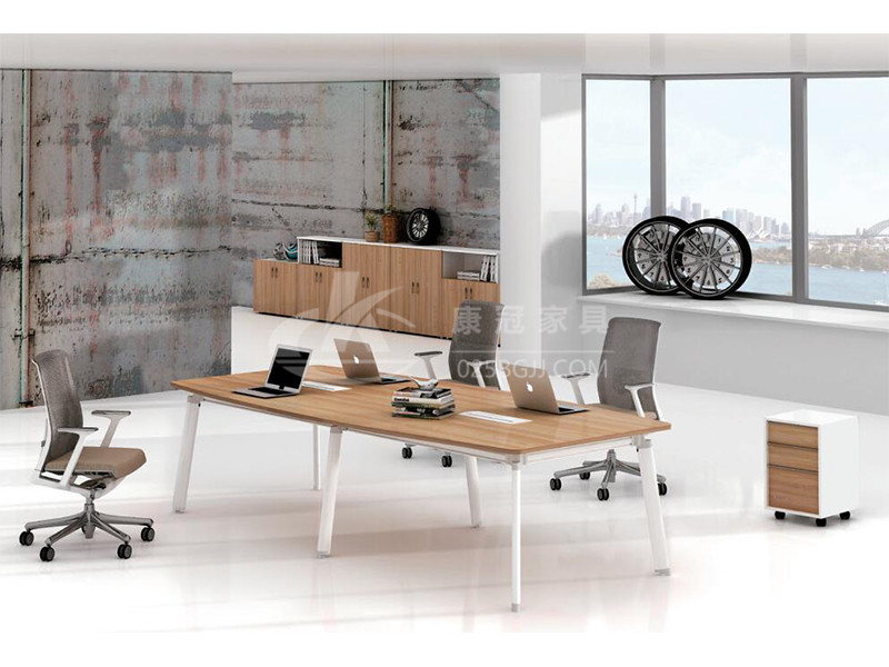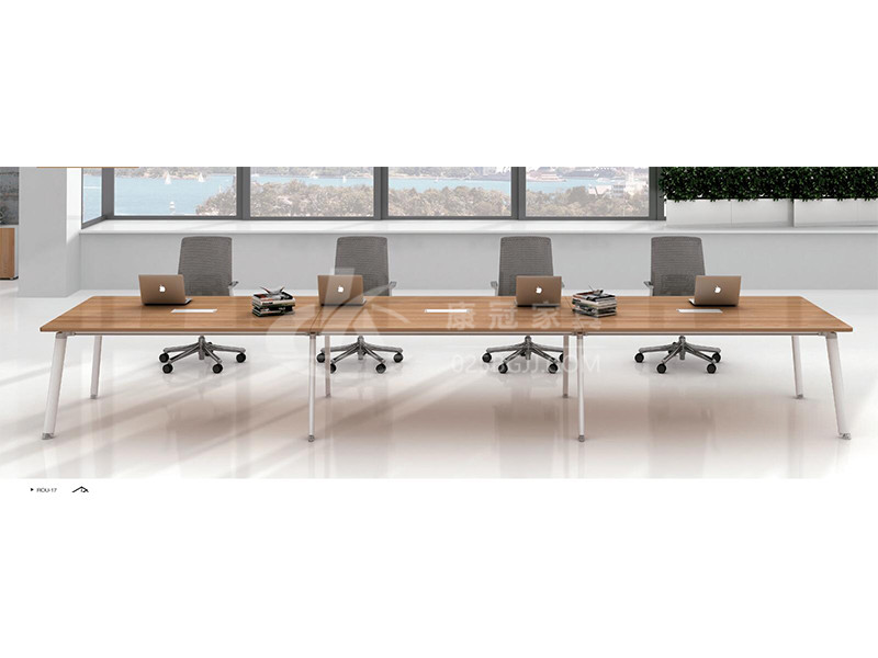 彩运网 板式会议桌采用与主管桌相同的设计元素,呈现办公空间整体性;模块式桌面咨询平台,独设的电路检修门,满足现代会议设备需求。