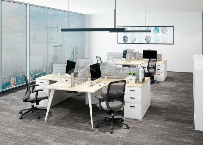 L形台面造型可满足高效的办公需求,便于工作,木质的纹理饰面,细节精致,色彩简洁,营造出舒适灵动的空间氛围,高档45度的铝合金桌腿结构,充分利用了三角形的造型优势,使稳固与轻巧得以完美实现;